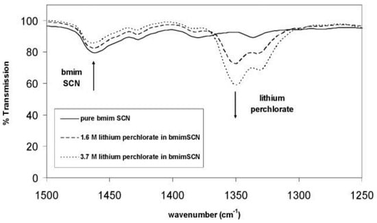 Molten salts made of an organic cation and organic or inorganic anion and with a melting temperatures below 100 °C are termed ionic liquids (ILs) [17]. Systems incorporating ionic liquids gained significant importance after the discovery of the first of their kind: [N(C2H5)H3][NO3] [18]. Recently, awakened interest in ionic liquids has been provoked by some of the remarkable properties that ionic liquids possess, such as their remarkable ionic conductivity, reaching between 1 and 10 mS/cm at room temperature; their extended electrochemical stability window of about 3–5 V; their excellent thermal stability; non-flammability; low toxicity; low vapor pressure; and their non-volatility. All of these factors are highly valued in applications [19] and make such applications much safer than those utilizing organic solvent-based electrolytes, paving the way for the extensive study of their applications [20,21].