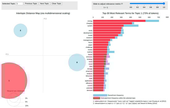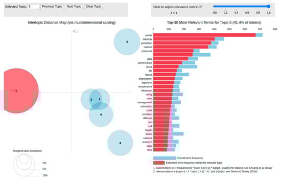 In the context of this literature review on EV battery technologies and capacity prediction, DTM effectively supports the research goals by uncovering temporal trends, analysing evolving methodologies, and identifying influential factors affecting battery performance. This aligns with the research questions, as it enables the tracking of technological shifts, examination of prominent capacity prediction techniques, and identification of emerging influences on battery longevity. By clustering the literature into topic–time groups, DTM aids in selecting key articles, facilitating a deeper understanding of the field’s progress. We ran two separated DTM models, one for each theme.
