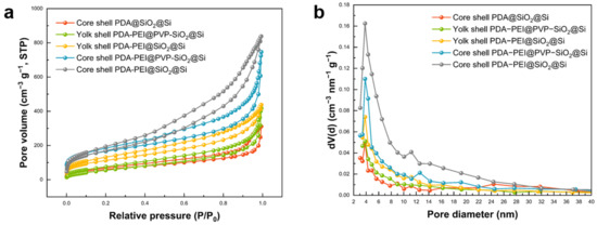 2.2. Fabrication of Yolk Shell and Core Shell PDA–PEI@PVP–SiO2@Si Composites