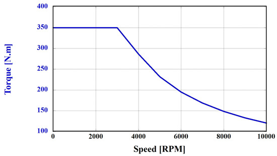 Torque–RPM performance curve of the PMSM model.