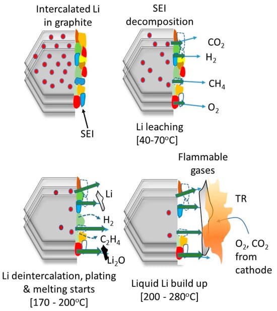 45. Liu, X.; Yin, L.; Ren, D.; Wang, L.; Ren, Y.; Xu, W.; Lapidus, S.; Wang, H.; He, X.; Chen, Z.; et al. In situ observation of thermal-driven degradation and safety concerns of lithiated graphite anode. Nat. Commun. 2021, 12, 4235. [Google Scholar] [CrossRef] [PubMed]