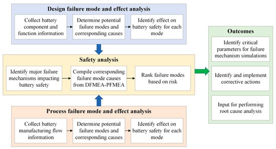 It is first important to comprehend the influence of each individual element and manufacturing process on battery safety. Section 2 and Section 3 provide an overview of the design elements and manufacturing processes, which serve as the foundation for identifying potential failure modes while performing the design and process failure mode and effect analysis (DFMEA and PFMEA), respectively. The corresponding modes, causes, and effects tables are listed in Appendix A. Section 4 presents the integrated DFMEA-PFMEA safety analysis, identifies four significant cause mechanisms, and compiles the corresponding causes to offer a comprehensive understanding. Section 5 serves as the concluding part of the paper, encapsulating the main findings and key insights derived from the preceding sections.