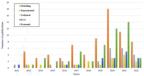 Number of publications related to second-life batteries in various subjects from 2012 to 2022 [40].