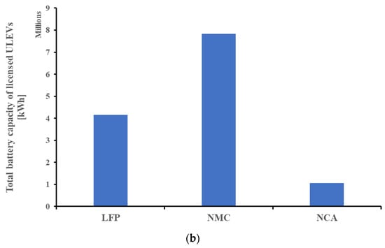 The (a) total number and (b) capacity of the licensed ULEVs in UK with various chemistries.