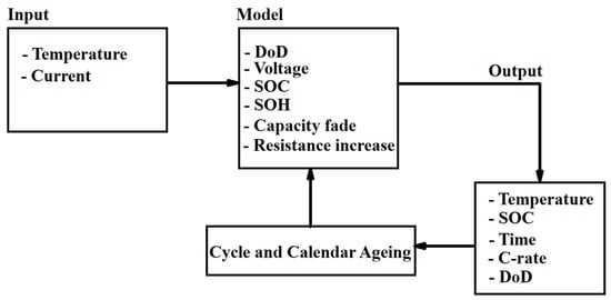 The methodology used by Casals et al. [73] for considering ageing effects in the developed ECM.