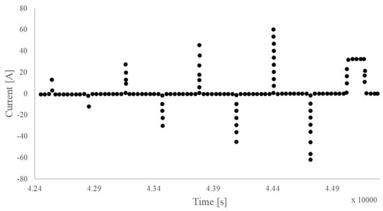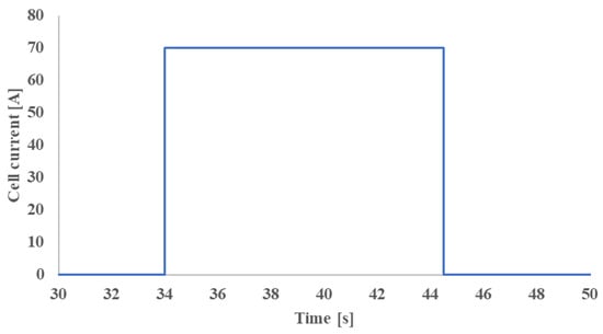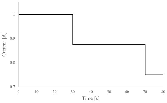 The current pulses utilized during HPPC tests may vary based on the intended application of the second-life battery. Consequently, it is necessary to characterise the ECM of the second-life battery according to these variations. In the study performed by Hart et al. [60], the HPPC tests were carried out along with EIS on a prismatic 70 Ah automotive Calb LiFePO4 cell to characterise the ECM, as demonstrated in Figure 13. The current pulse employed in the HPPC tests is illustrated in Figure 14. These tests were conducted at environmental temperatures of 10 °C and 30 °C. The characterisation of the ECM was undertaken to evaluate the performance of second-life battery packs for microgrid application. Notably, this study focused on characterising the second-life battery at the cell level.