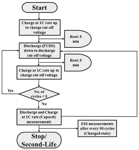 To properly understand and confirm the accuracy of the commonly used ECMs in mathematically describing second-life batteries, it is important to conduct experimental tests. These tests fall into different main categories based on their specific aims: rapid capacity, characterisation, and degradation tests.