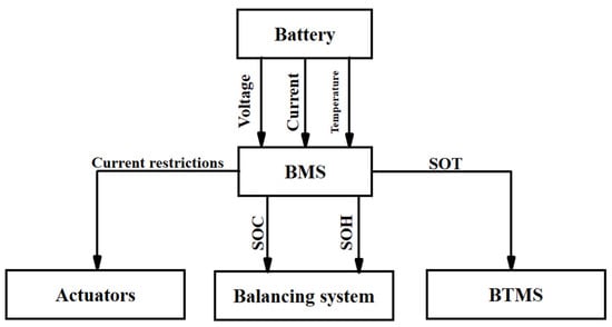 One of the main features of a BMS is estimating the state of charge (SoC), health, and temperature of the batteries [67]. Such battery parameters can be accurately estimated by integrating different mathematical algorithms with characterised equivalent-circuit models. These algorithms will modify the operational parameters of the batteries in steady-state conditions according to the charge, temperature, and degradation state of the modules [68,69,70]. The main parameters that will be affected by the degradation of the batteries are the battery charge capacity, terminal resistance, and open-circuit voltage [71].