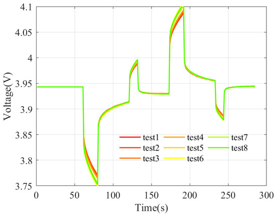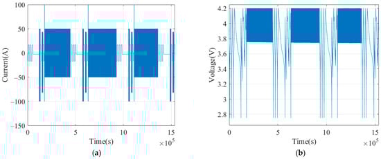 - DST and FUDS conditions: Set the batteries according to the FreedomCAR test manual [27], as shown in Figure 8c,d.