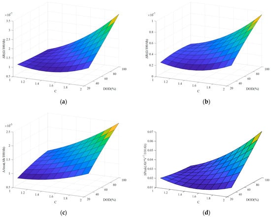 There are many operating parameters that contribute to the difference in aging rates. Among them, DOD, C-rate, and temperature have the greatest impact. However, almost all energy storage battery compartments are already equipped with temperature management systems, such as air conditioning, air cooling, and liquid cooling, which the result that the uneven effect of temperature is no longer obvious and significant [26]. Therefore, combined aging experiments were conducted using the chosen batteries at varying DODs and C-rates, as shown in Table 2: