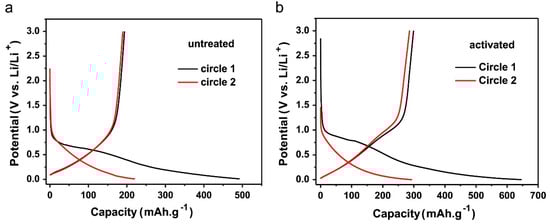 Charge–discharge profiles of (a) pristine and (b) pretreated carbon. Reproduced with permission from [63], Copyright © 2014 Elsevier B.V.
