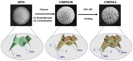 Schematic of the preparation route of C/DFNS nanocomposites.