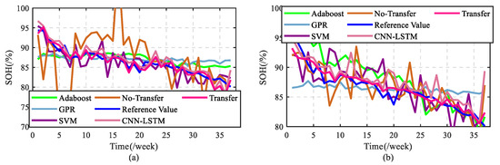 method, it can be seen that the model fitting effect based on different SOC intervals is better than the model effect based on the complete SOC interval. This can also show that while the feature dimension and the demand for label data in the target domain are reduced, the battery SOH estimation accuracy has not been reduced.