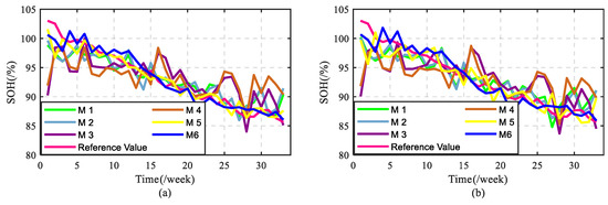 method are closer to the reference value, and its effect of tracking the reference value is more obvious, while the battery SOH estimation based on the