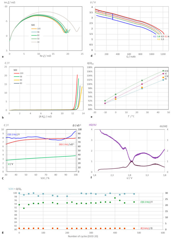 With respect to providing more general insights into the diagnosis of different electrochemical energy converters, the concept of impedance spectroscopy [1] has been verified through examples of lithium-ion cells and supercapacitors during longtime tests. We tested hundreds of lithium-ion batteries of different manufacturers and cell chemistries and considered whether there was a simple means to determine whether they were ‘full’ or ‘empty’ without performing a full charge/discharge cycle each time and risking the overcharge or deep discharge of the cell. It can be challenging to determine the actual SOC and SOH of lithium-ion batteries after they have been idle for a while or after a high-power discharge.