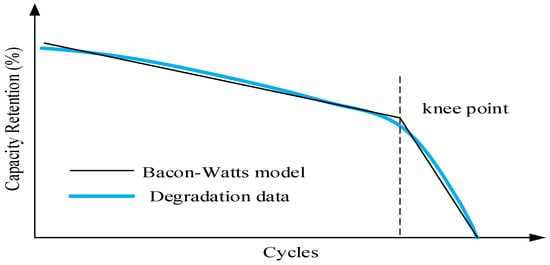 Capacity degradation and knee-point obtained using the Bacon-Watts model.