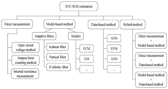Different classifications are employed to categorize techniques for estimating the SOC and SOH. Some researchers consolidate these methods into distinct categories that share notable similarities. Figure 3 illustrates that the upcoming section will look into methods associated with machine learning.