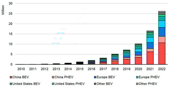 Global electric car stock in selected regions, 2010–2022. (IEA. CC BY 4.0.).