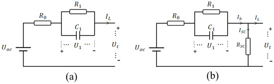 Figure 2. Structure of the equivalent circuit model: (a) first-order model; (b) first-order model with ISC.