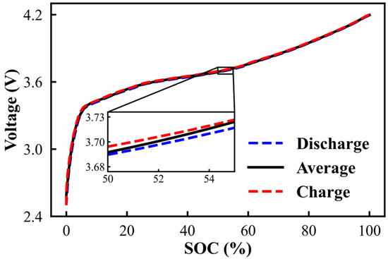 Moreover, the SOC-OCV curve of the battery was conducted to estimate SOC, as depicted in Figure 4 A fully-charged battery was discharged to a cut-off voltage of 2.5 V, followed by charging to a cut-off voltage of 4.2 V, and the whole charge–discharge process was under a low current of 0.05 C. Two working conditions of FUDS and US06 driving schedules (US06) were considered; the specific operating condition components can be referred to in [34]. To reflect the variation of cells, different initial SOCs of the cells were selected, and the maximum inconsistency was 3%. In addition, the testing ambient temperature and the initial temperature of the battery were under 25°C. The injected Gaussian white noise with standard deviation was 3 mV for the voltage sensor and 0.03°C for the temperature sensor to acquire original data. A battery pack consisting of a single module with eight cells in series was built to verify the effectiveness of the proposed fault diagnosis method. Short-circuit fault and sensor fault tests were conducted under different operating conditions, where the fault parameters were selected mainly based on the experimental values in [8,11,14,35]; and the specific fault parameters for testing are listed in Table 2.