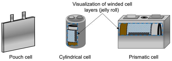 Visualization of the pouch, cylindrical, and prismatic cells.