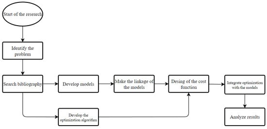 These models are put to work together, so that, through a metaheuristic optimization technique derived from the PSO, designed specifically for this work, an optimization of the design parameters is carried out in order to minimize the round-trip efficiency losses caused by pressure losses and shunt currents. In this way, what is sought in this work is the automation of the optimization of the design of this type of batteries. Basically, the research has been developed as shown in Figure 1.