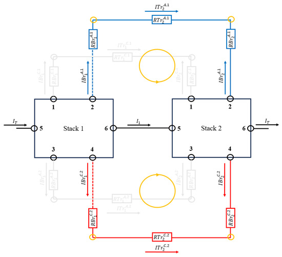 Figure 2 shows an example of an equivalent electrical circuit modeling the shunt currents of single-stack cells according to [31].