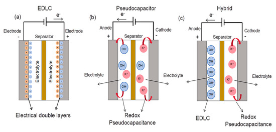 - Waqas Hakim, M.; Fatima, S.; Rizwan, S.; Mahmood, A. Pseudo-capacitors: Introduction, Controlling Factors and Future. In Nanostructured Materials for Supercapacitors; Thomas, S., Gueye, A.B., Gupta, R.K., Eds.; Springer International Publishing: Cham, Switzerland, 2022; pp. 53–70. [Google Scholar]