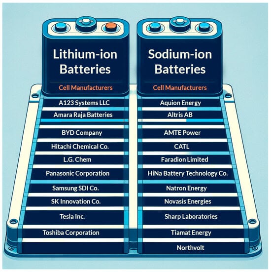 Major cell manufacturers of sodium-ion and lithium-ion batteries [,,].