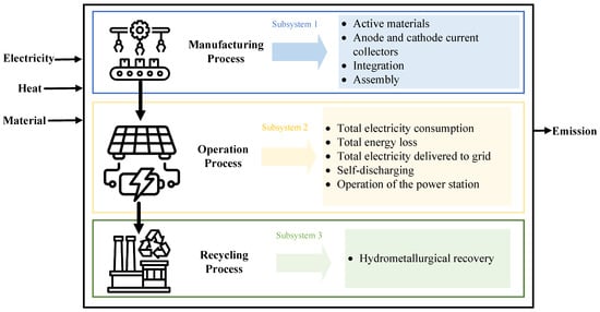The LFP battery impact assessment boundary, including 3 subsystems.