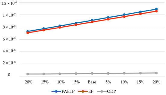 The quality of input data is crucial in LCA because the impact assessments rely heavily on accurate data. The sensitivity analysis is carried out for the three most contributive indicators, namely FAETP, EP, and ODP, by examining the impact of input data deviation by ±20%. Figure 7 shows the sensitivity analysis.