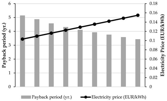 Sensitivity analysis on electricity price and its effects on payback periods.