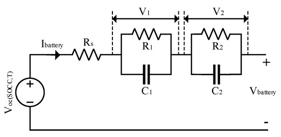 Where is the battery current. The open-circuit voltage is a function of the state of charge (SOC) and the internal resistance . However, considering polarization resistors, R1 and R2 and polarization capacitors C1 and C2: