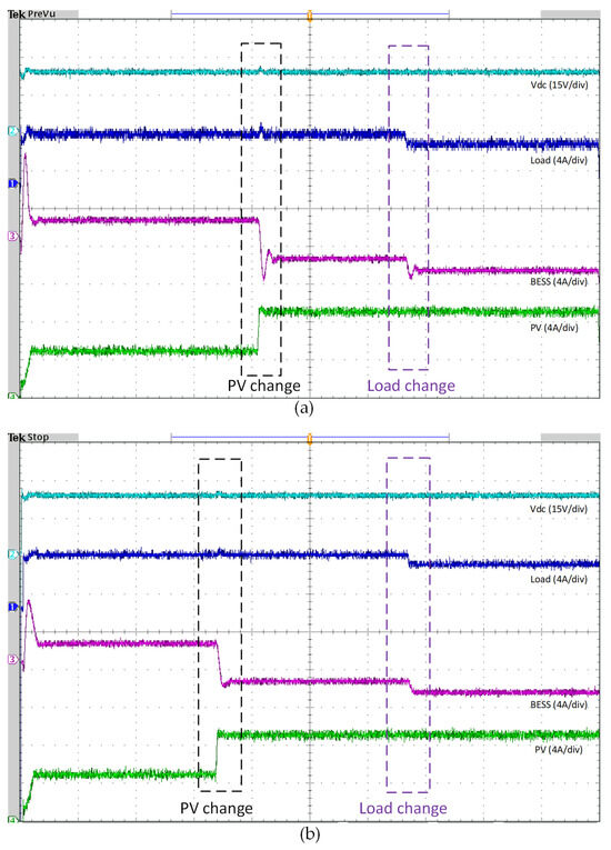 Experimental validation of the proposed hybrid control scheme with irradiance variation and variable PPL. (a) Results of PI−PI control algorithm, (b) Proposed algorithm RNN−PI results.