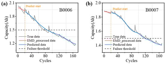Test results on B0006 and B0007 of the target domain NASA batteries. (a) B0006. (b) B0007.