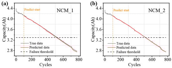 Test results on NCM_1 and NCM_2 of the target domain NCM batteries. (a) NCM_1. (b) NCM_2.