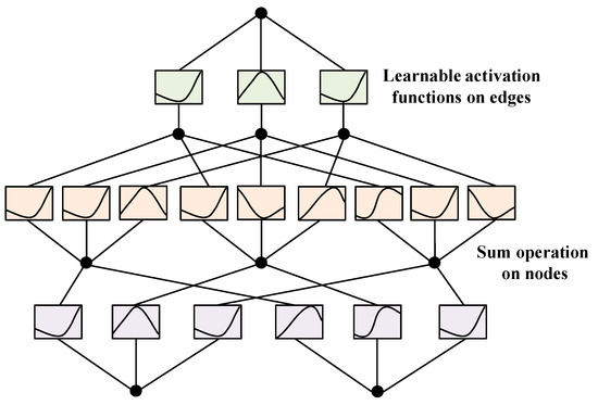 Kolmogorov–Arnold Networks (KANs) are a novel network architecture proposed by the MIT team in May 2024, which were inspired by the Kolmogorov–Arnold representation theorem [15], as shown in Figure 8. This theorem states that any multivariable continuous function can be decomposed into a finite sum of continuous functions of one variable and an additional continuous function. Leveraging this theoretical foundation, Kolmogorov–Arnold Networks aim to simplify the representation of complex functions and improve the efficiency and interpretability of neural networks.