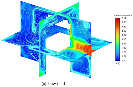 Characterization of flow field and temperature field distributions for Case 4: (a) Flow field, (b) Temperature field.