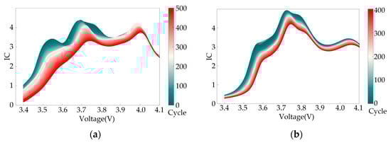 34] estimated the SOH of lithium-ion batteries based on the incremental capacity curve and the GPR. These feature extraction methods often rely on the complete charging process. However, in practical scenarios, due to the presence of numerous stochastic charging and discharging behaviors, the initial state of charge (SOC) is always arbitrary when the vehicle is charging. Consequently, obtaining comprehensive data on full charging and discharging cycles is challenging. Some researchers have used only partial IC curves and input them directly into the algorithmic model. Literature [