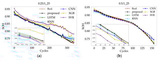 Table 2 clearly indicate that using the voltage segment of 3.6–3.8 V as the input yields the most favorable outcomes across all three evaluation metrics, thereby affirming the superiority of this proposed input voltage segment. Additionally, it is noteworthy that the voltage segments of 3.8–4 V and 4–4.2 V exhibit comparatively lower effectiveness in contrast to the segments of 3.4–3.6 V and 3.6–3.8 V. This observation can be attributed to the overlapping phenomenon observed in the IC curves beyond 3.8 V.
