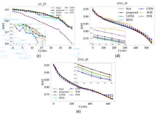 Figure 8 illustrates the estimated results for a randomly selected cell from the five cases in the test set. For clarity in presentation, 30 cycles of SOH values are depicted for each cell.