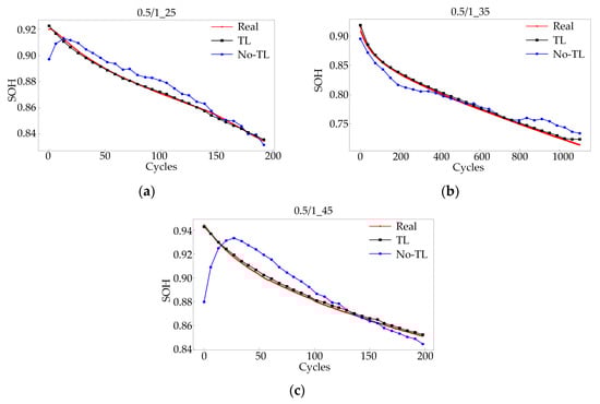 (3) No-TL: The model undergoes direct re-training using the limited target domain dataset, after which it is utilized to estimate SOH.