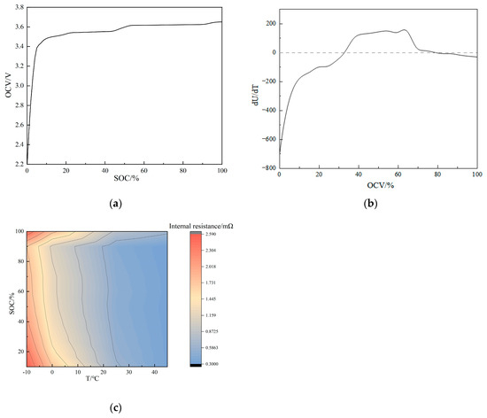 (a) OCV curve (b) Entropy heat coefficient (c) Internal resistance.