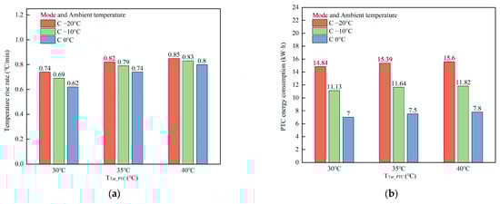 (a) Battery temperature rise rate (b) PTC energy consumption.