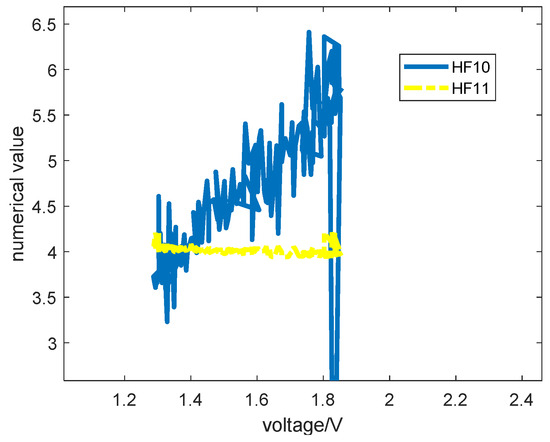 The third category of data related to the IC curve: Extract the peak value of the IC curve (HF10) Extract the voltage corresponding to the peak value of the IC curve (HF11) as shown in Figure 4. The IC curve requires the calculation of the battery capacity change and the battery terminal voltage change, which are calculated using the following formula: