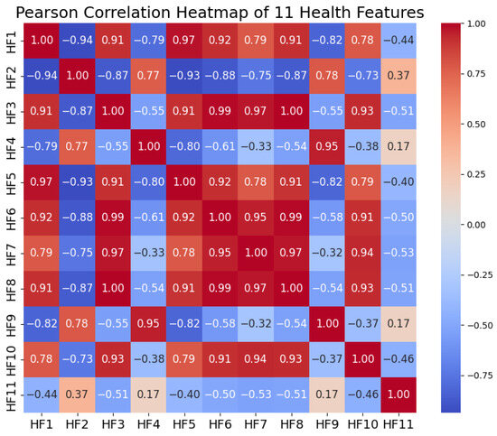 In this experiment, the Pearson and Spearman correlation coefficients of each characteristic parameter and the maximum capacity of the battery per cycle were calculated. The Pearson Correlation Heatmap of all features is shown in Figure 5.