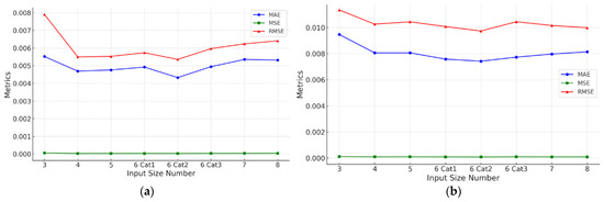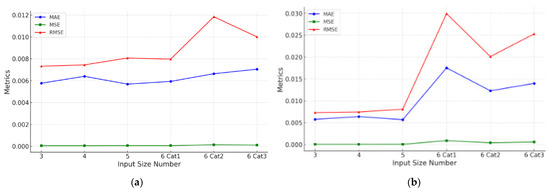 CNN-LSTM performance metrics for different input sizes (a) B5 result; (b) B18 result.