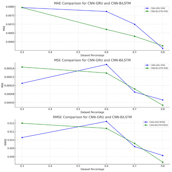 From the data in the tables, it can be observed that when the total input data volume exceeds 60%, the reduction in input data has a relatively smaller impact on the CNN-BiLSTM network compared to the GRU algorithm. This indicates that the CNN-BiLSTM network requires less data to achieve a certain level of accuracy.