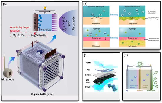 - Li, L.; Chen, H.; He, E.; Wang, L.; Ye, T.; Lu, J.; Jiao, Y.; Wang, J.; Gao, R.; Peng, H. High-energy-density magnesium-air battery based on dual-layer gel electrolyte. Angew. Chem. 2021, 133, 15445–15450. [Google Scholar] [CrossRef]