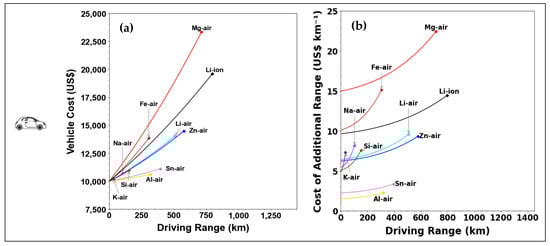 Currently, none of these battery chemistries have achieved the technological maturity required for widespread industrial adoption. As a result, their potential to either replace or supplement Li-ion batteries as the primary power source or range extenders for future EVs remains highly uncertain. Although some studies explore the potential of specific MABs like Li–air or Zn–air batteries as range extenders, they do not offer a comprehensive comparison of all the MABs currently being studied in the field. Thus, this comparative review aims to bridge this knowledge gap by offering a comprehensive analysis of different MABs as potential EV range extenders. The review will delve into their structural compositions, operational principles, performance metrics, and existing challenges. By critically evaluating the strengths and limitations of each battery type, the goal is to illuminate their suitability for integration into the rapidly evolving EV market. Section 2 introduces MABs as energy storage systems and delves into specific types with different anodes, describing in detail their types, working principles, advantages, and challenges. Section 3 provides a comparison of the practical properties of these MABs, focusing on factors such as driving range, battery pack volume, and total vehicle cost. Section 4 concludes with summarizing remarks, encapsulating the observations made throughout the review.